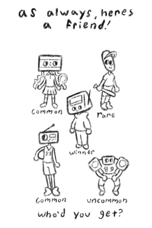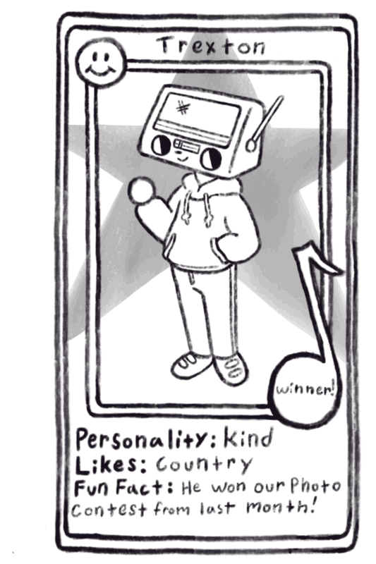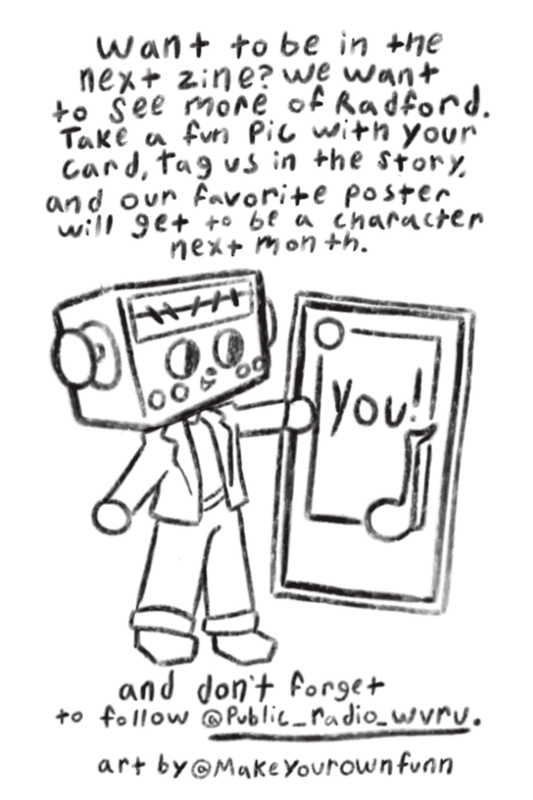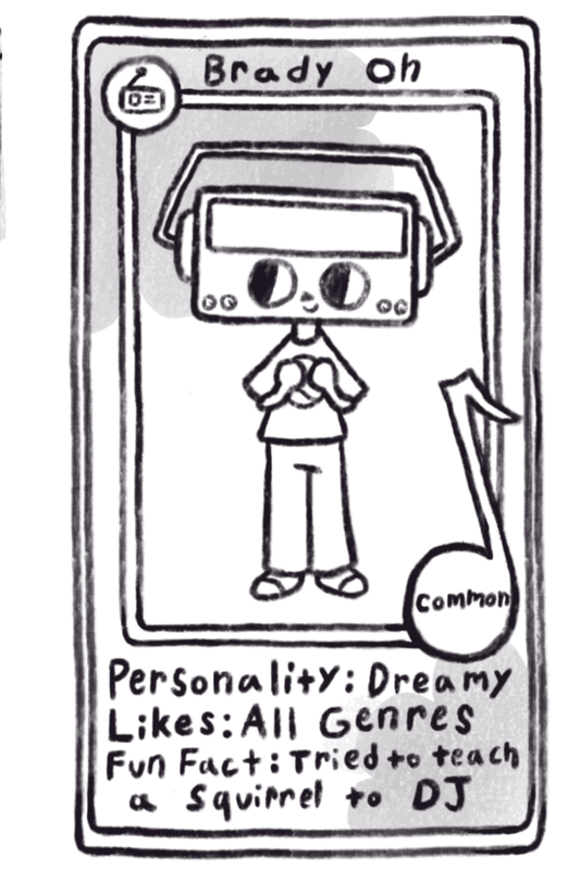 Meet the Radio-Heads! These are monthly zines I create to promote my college's radio station. They come with trading cards, and each month I create new characters to collect. I plan to make a different page for all the characters as I love them so.