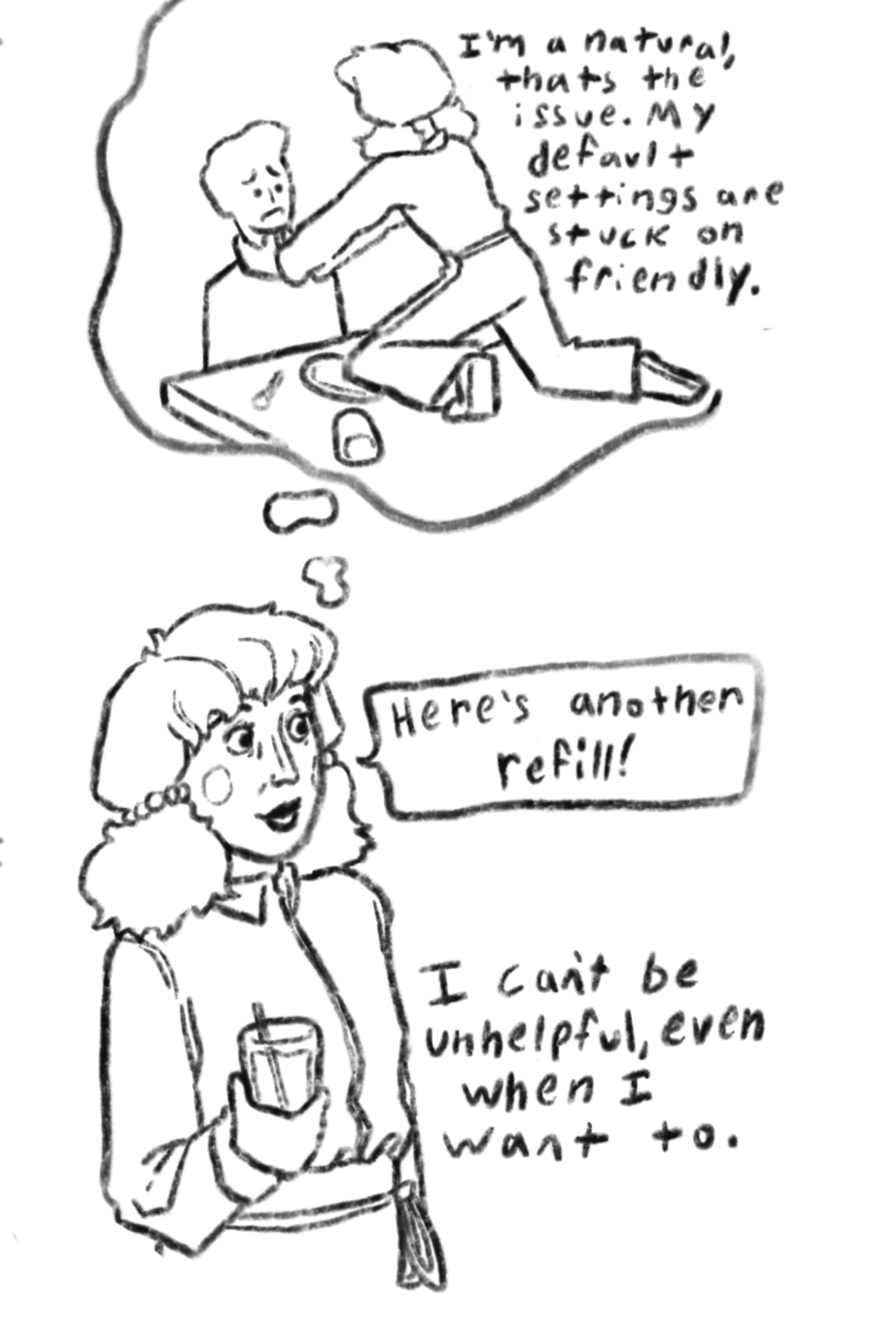 Robot Problems is a slice of life comic I make every once and awhile. The protagonist is Six, who loves simple pleasures and complaining. I have more drawings of Six on my art page if you're interested :)